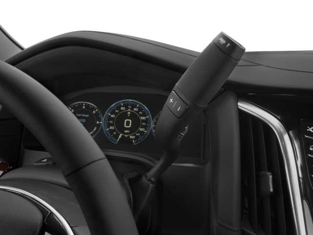 - Cadillac CUE Information and Media Control System with Embedded Navigation AM/FM stereo, 8" diagonal color information display featuring touch response, haptic feedback, gesture recognition and Natural Voice Recognition. Five USB ports, including one in the articulating storage door/bin, SD card slot and auxiliary audio port