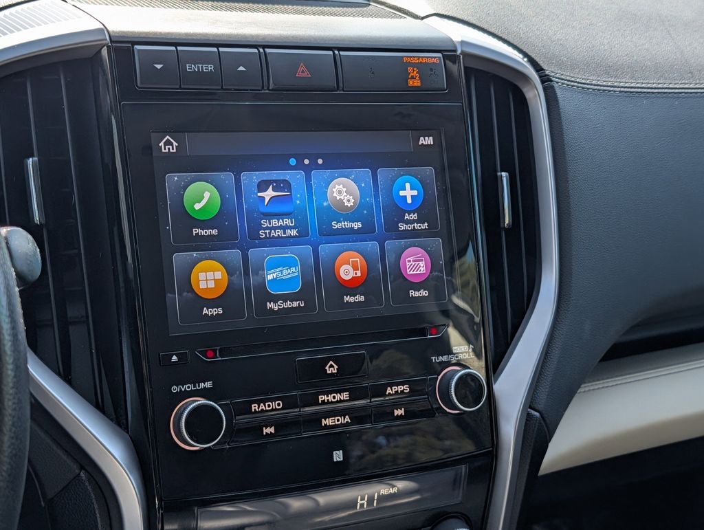 - Radio: Subaru STARLINK 8.0" Multimedia Plus System -inc: AM/FM stereo HD Radio w/single disc CD player, MP3/WMA/CRR/RW file capability, multi-touch gesture high resolution LCD display screen, voice activated controls, Bluetooth® audio streaming connectivity, Bluetooth® hands-free phone connectivity, Bluetooth® hands-free SMS text messaging connectivity (applicable w/compatible cell phone), Near Field Communication (NFC), iPod control capability, SiriusXM All Access radio (subscription required), SiriusXM Travel Link (subscription required), smartphone integration for Aha, Android Auto, CarPlay and Pandora, STARLINK cloud applications, steering wheel controls for audio and Bluetooth®, 6 speakers, 3.5mm auxiliary input jack and front, second and third row dual USB ports